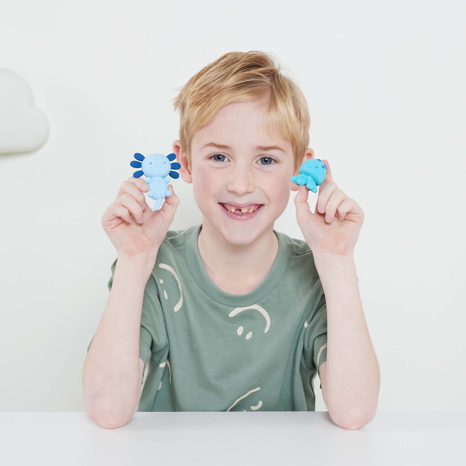 Little hands can bring big ideas to life with this soft, lightweight, air-drying clay. Super Clay – Ocean invites kids to roll, knead and sculpt vibrant blue clay to create two fun characters — axolotl and jellyfish — using step-by-step visual instructions, or to shape whatever their imagination comes up with. No oven needed — just air-dry for play or display.
