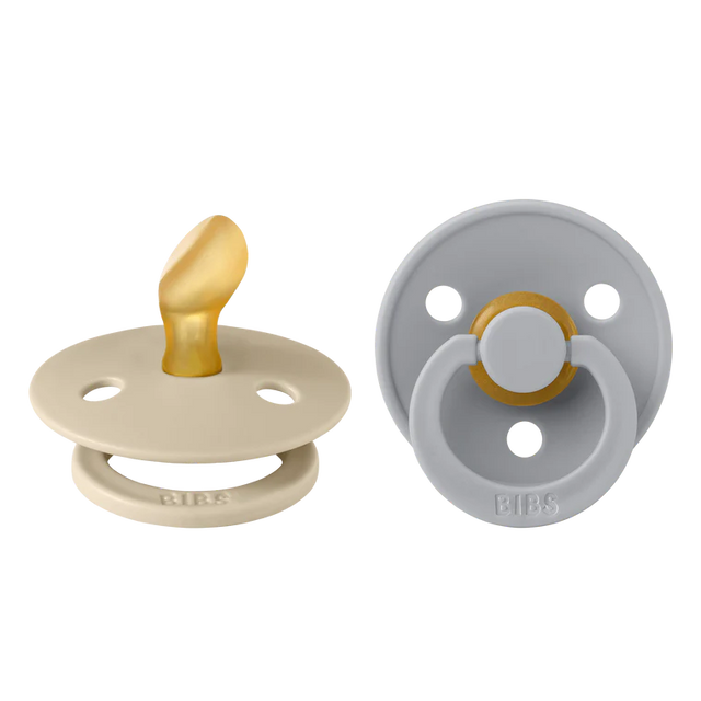 BIBS Colour pacifier is the original BIBS pacifier and has been on the market for over 40 years. It has the signature round BIBS shield with three vent holes and round BIBS engraved handle ring.