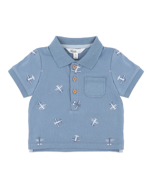 For little adventurers who love to soar! This classic polo shirt features a playful all-over plane embroidery on a soft cotton pique base. With a button-up front placket and chest pocket detail, it's both smart and comfy - ideal for everyday exploring or dressier occasions. Available in both baby and kids sizes for coordinated sibling style.