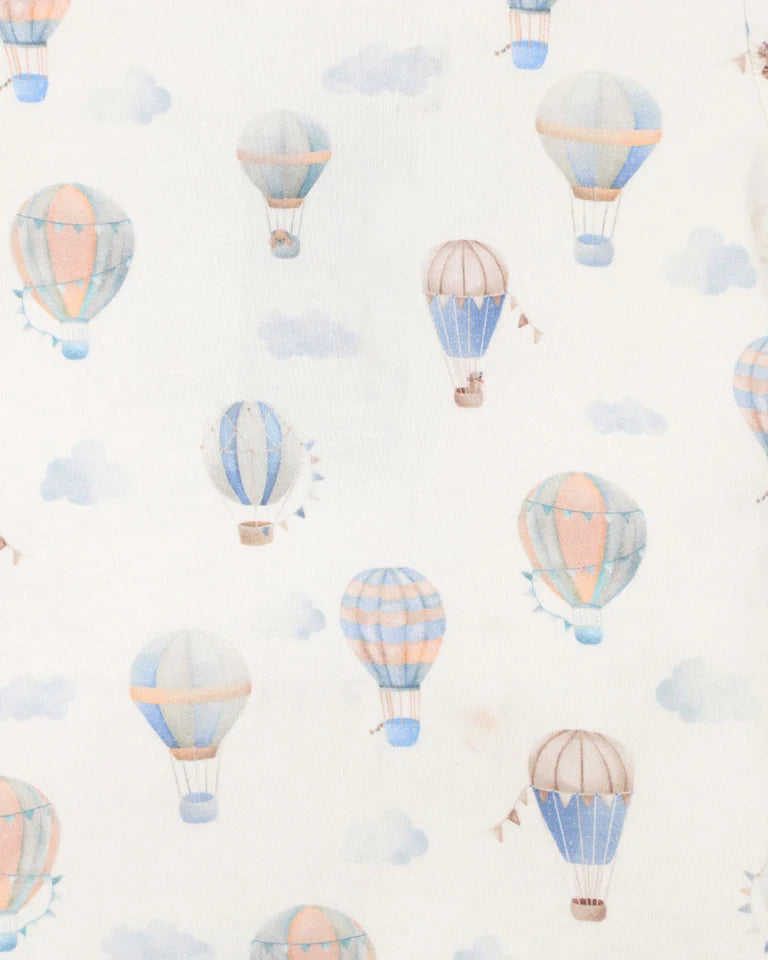 Whisk your little dreamer away in this enchanting hot air balloon zip romper, where comfort meets imagination.
