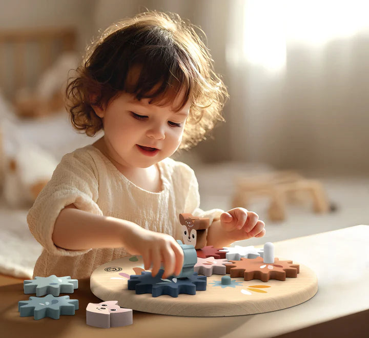 Get your little one's curiosity turning with the Gear Toy. A colorful and interactive wooden toy that combines fun with foundational learning. Designed for children 2 years and older, this toy encourages problem-solving, hand-eye coordination, and fine motor development as kids explore how gears spin and interact.