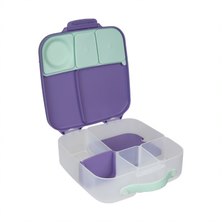 The custom divider slides across enabling parents to adjust the compartment size  as they need, or remove it to fit a whole banana or wrap.