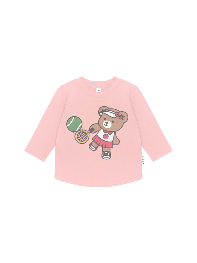 Super soft, premium organic cotton jersey long sleeve t-shirt with tennis girl bear print