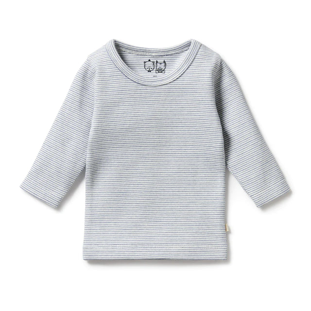 Wilson + Frenchie Organic Stripe Rib Long Sleeve Top - Rain Drop - Premmie is backordered and will ship as soon as it is back in stock.