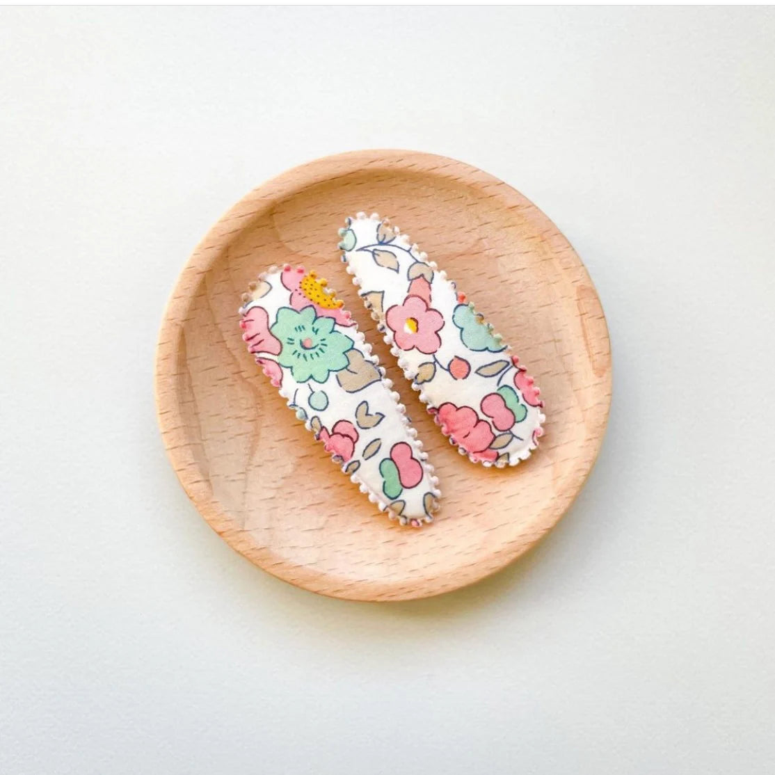 Sold in sets of two these timeless hair clips are finished using a range of Liberty London prints along with a selection of fabrics designed by The Rifle Paper Co.