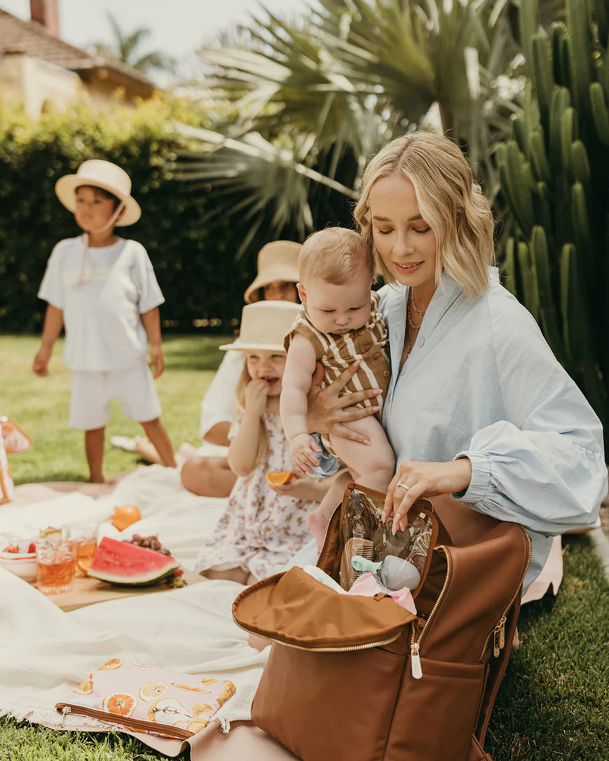 The Multitasker Nappy Backpack by OiOi has been designed with families of multiple kids in mind. It is the largest nappy bag in our collection and it has two main compartments for easy organisation. With its large capacity and luggage strap, it is also perfect for travelling.