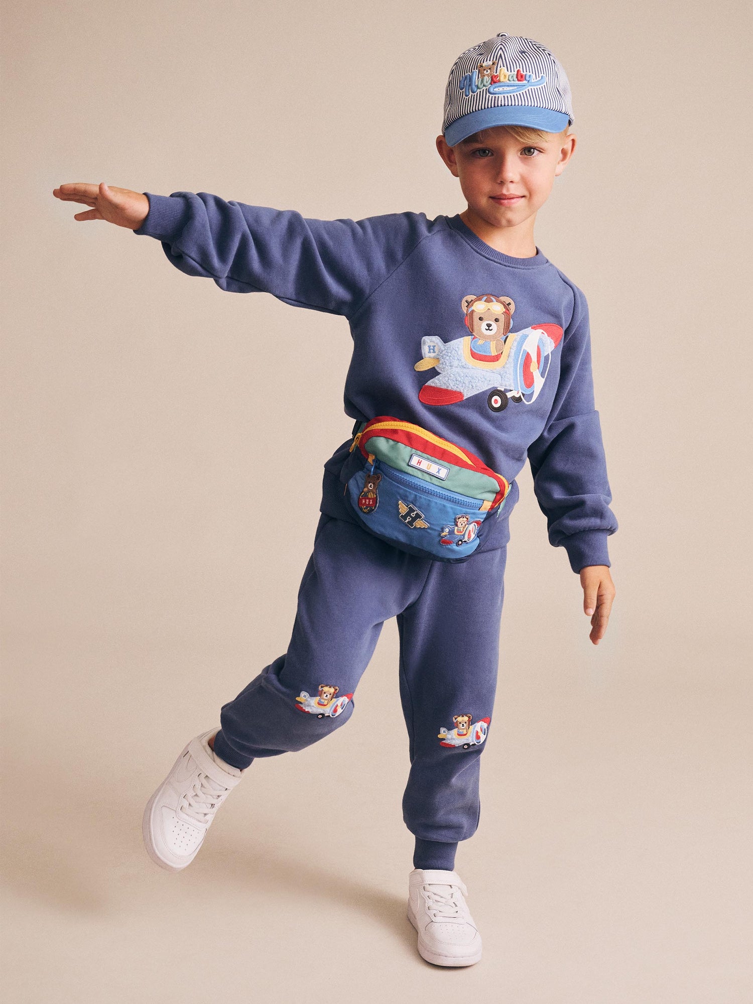 Stay warm and cosy in this pair of fluffy terry track pants. Made from organic cotton, they feature a functional drawstring for an adjustable fit, a cute-yet-comfy aviator Huxbear embroidery knee detail and a soft, stretchy waistband to keep little tummies snug. Match them with our Aviator Huxbear Sweatshirt for a co-ord look.
