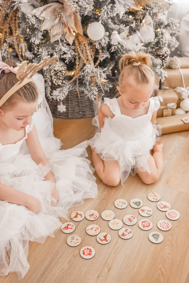 What better way to help your child learn memory recognition then with this cute Christmas Themed matching game! Featuring uv printed Christmas items. This beautiful set is a fresh modern twist on the popular children’s game.